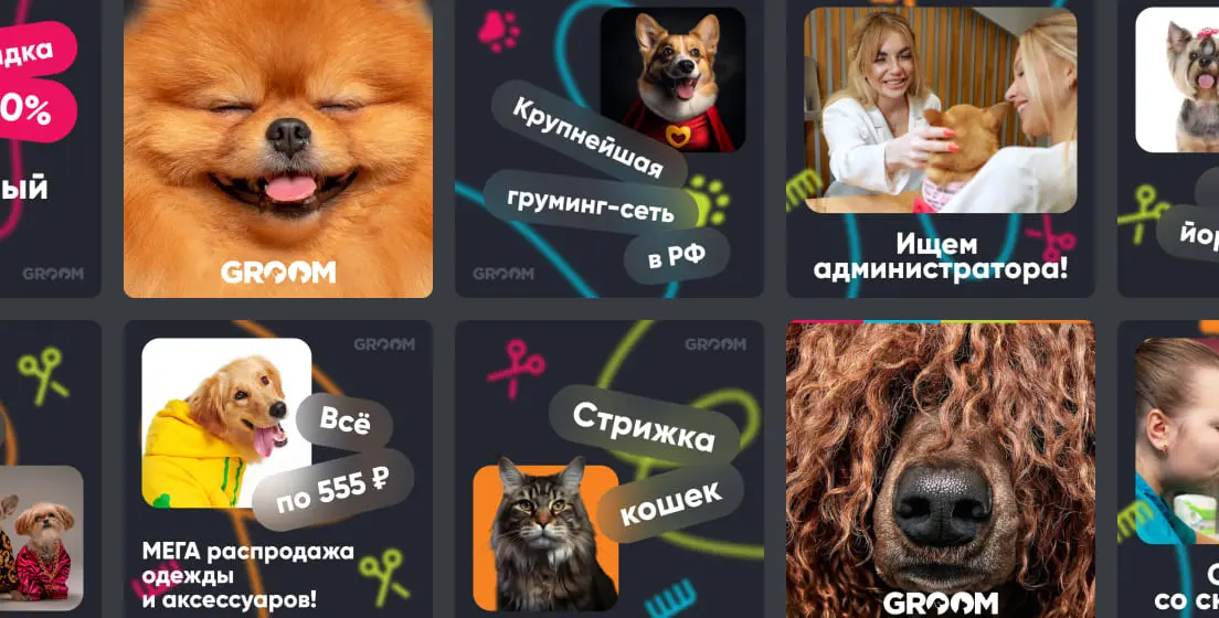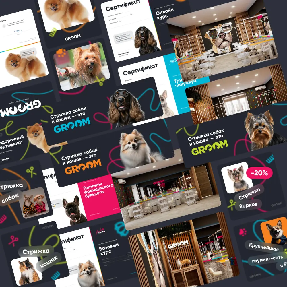 Today, Groom is an entire ecosystem consisting of 200 grooming salons, a call center, franchising, and grooming academies licensed by the Ministry of Education. The textbook “Encyclopedia of Grooming” has been published, copies of which are stored in the Russian State Library. An innovative production facility for animal cosmetics has been created. We were named “Best Project in the Service Sector” at the 2023 Business Success National Awards.